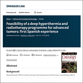 Feasibility of a deep hyperthermia and radiotherapy programme for advanced tumors. First Spanish Experience 제목으로 Clinical and Translational Oncology(21호_2019년 5월 17일 발행)에 게재된 이 연구는 방사선 종양학 부서에서 온열 치료와 방사선 병합치료의 실현 가능성, 내약성 및 안전성을 평가하는 것을 목표...